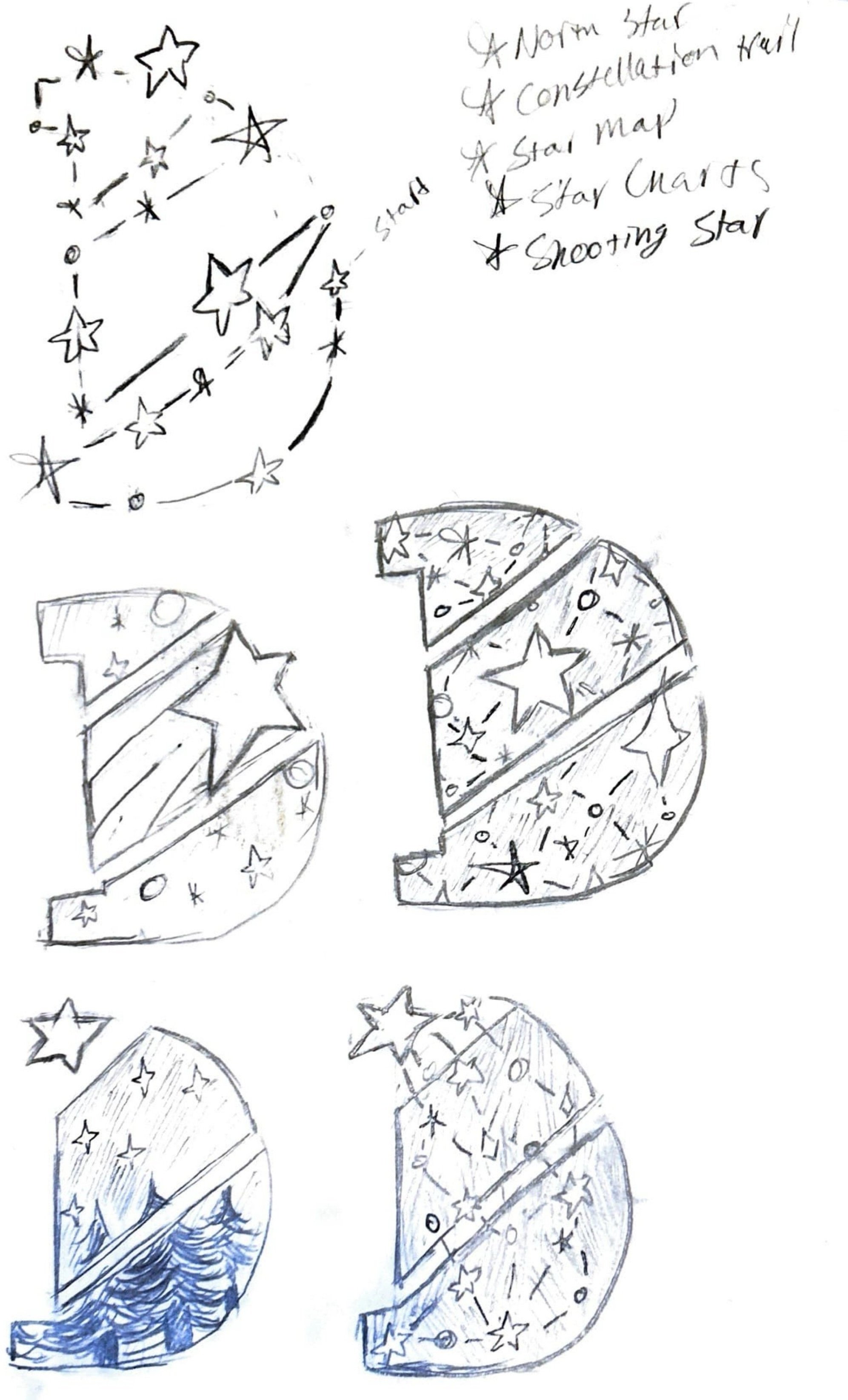 To achieve a concise, yet visually intriguing design, I spent quite a bit of time sketching and referencing other logo designs.