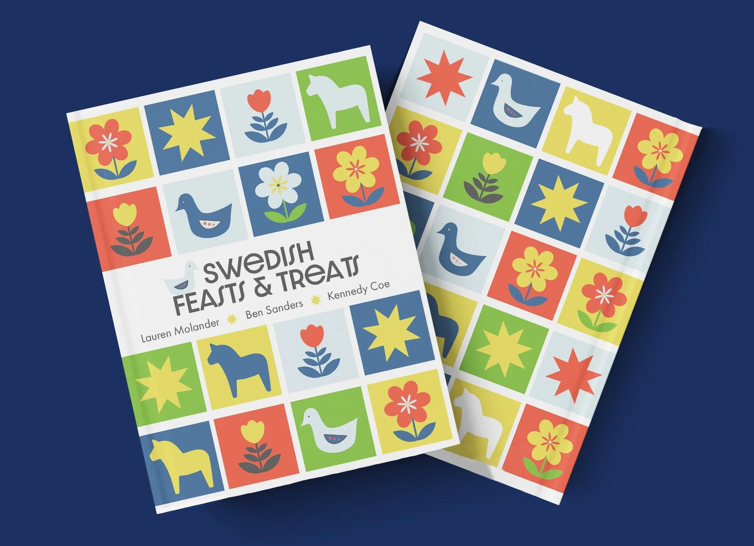 My team organized a collection of Swedish recipes accompanied by colorful and engaging modern Scandinavian-style designs to create a contemporary atmosphere that complements the more traditional and homely recipes included in the book. This visual narrative was established through a dynamic color palette, illustrations reminiscent of folk art, decorative geometric type systems, and brought together through a grid system to maintain consistency and visual hierarchy.